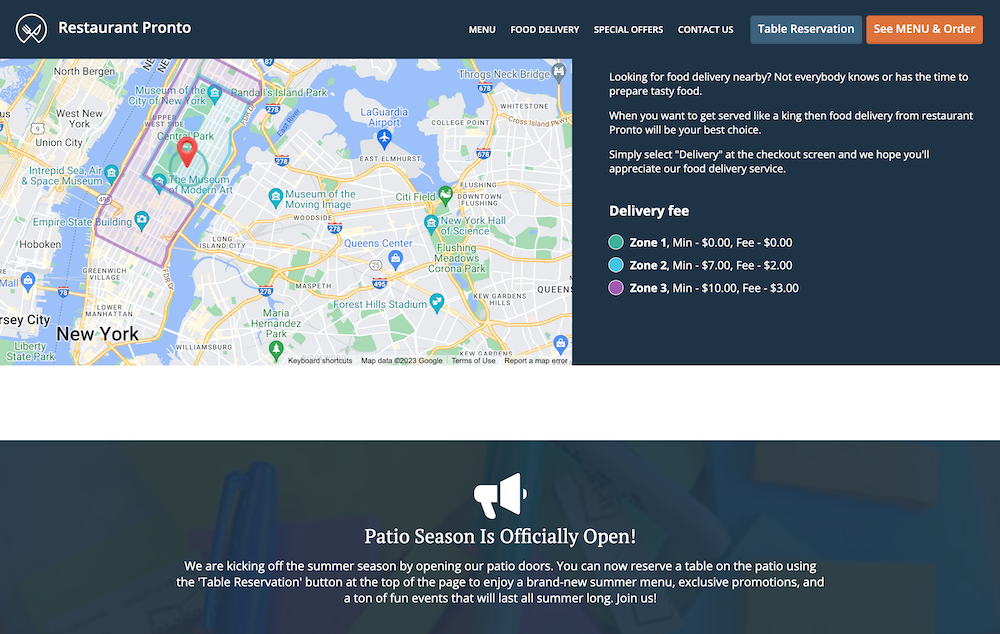 Follow these instructions to create your own restaurant website in minutes. Then, add an announcement section like the one above to the homepage: