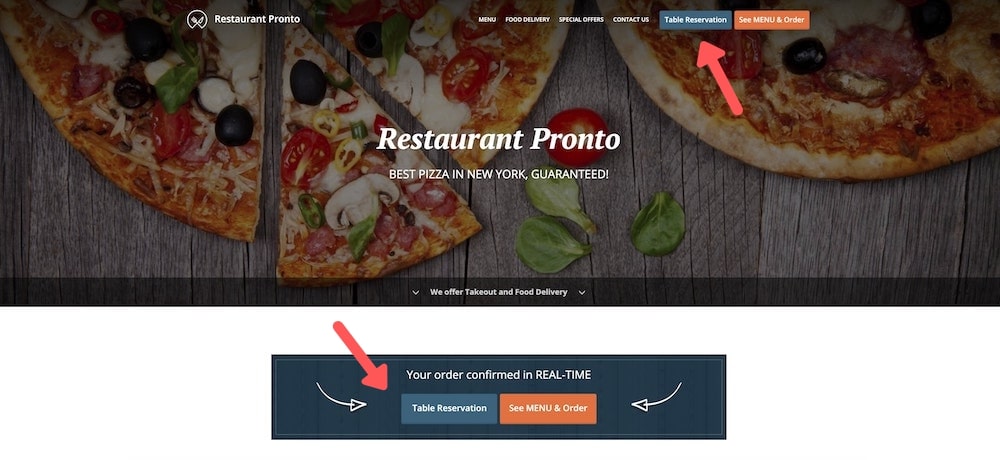 Remember that the page the user lands on when they click on your, let’s say, “Book Now” button should persuade them to finalize the action. Below is an example of a page that makes it easy for the customer to book a table by featuring the table reservation button twice: once in the header and once below the fold.