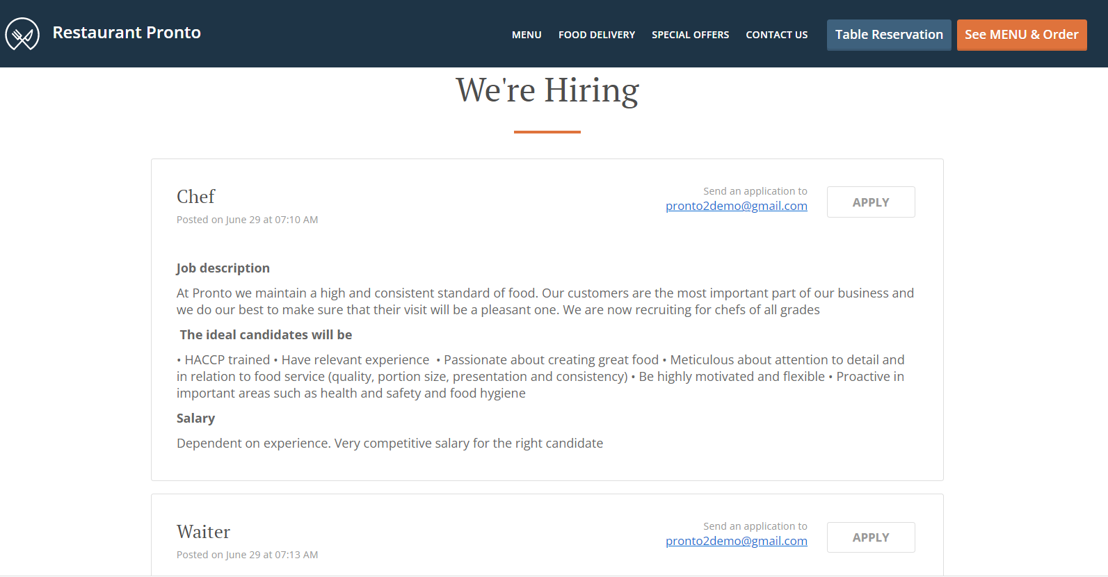 A better and simpler way to advertise your job openings is to have a dedicated section on your website. If you don’t have one or the one you have doesn’t support this way of customization, we can help you. The question won’t be where to find restaurant employees anymore, as they will come to you.