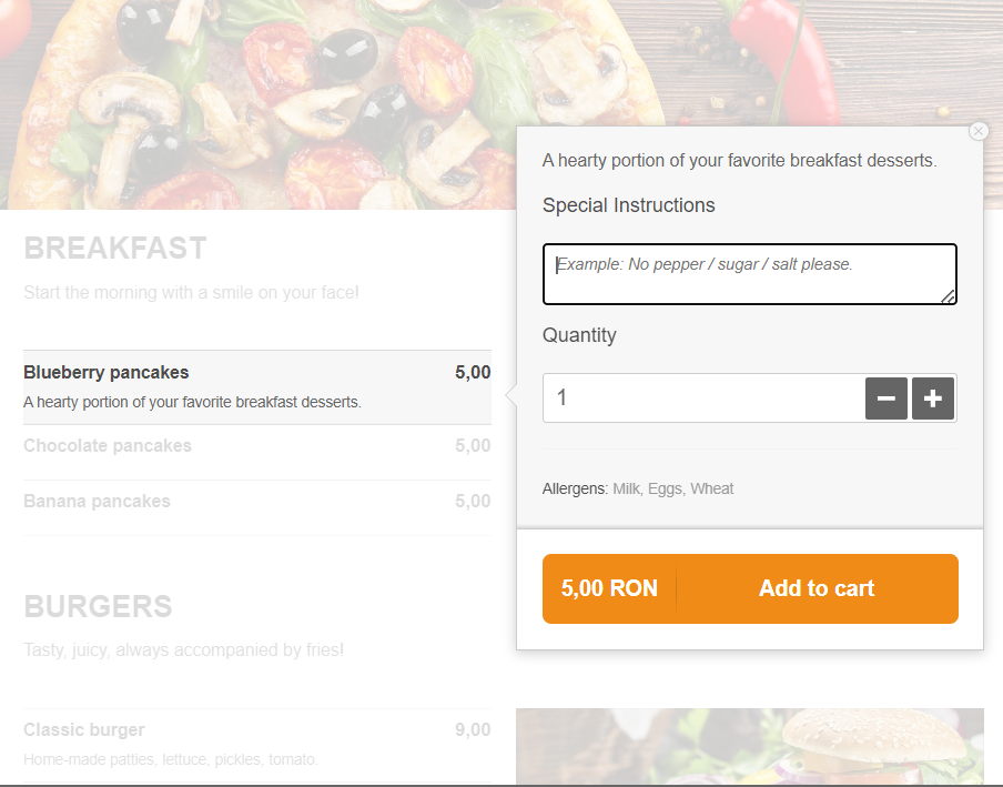- Offer promotions: tempt people to try out your diner by adding some restaurant promotions like free desserts for orders over $70 or 2+1 free for pancakes;