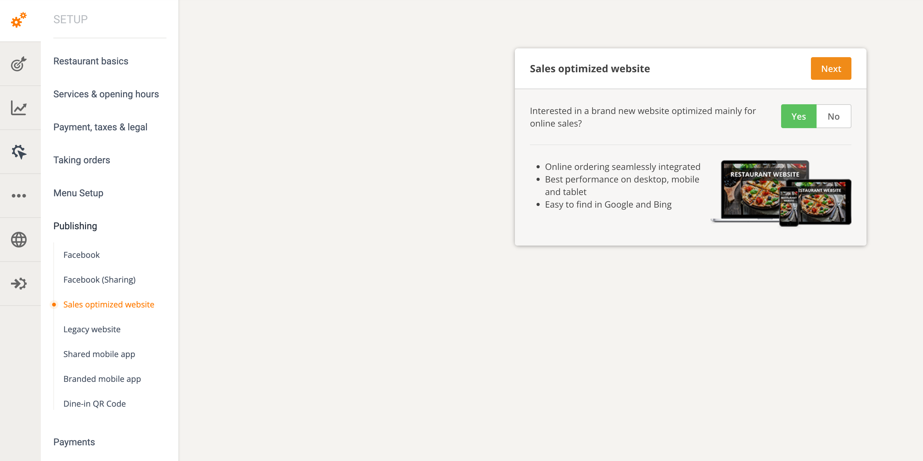 If you don’t have a website yet or don’t have the necessary knowledge or funds to hire a developer, you can generate a sales and SEO-optimized website directly from your GloriaFood dashboard by following these steps.