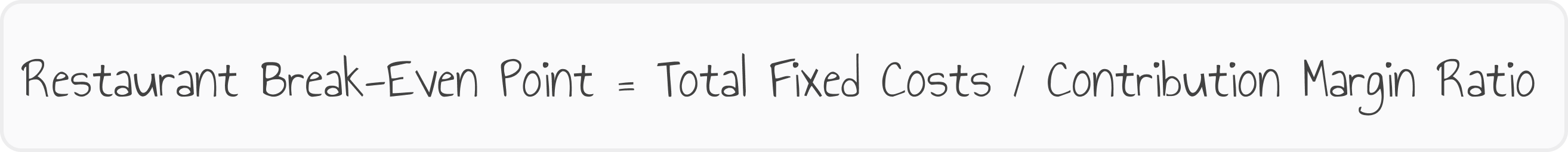Let’s say we are calculating the break-even point for Restaurant Pronto. After careful measuring, the owners identified their costs and winnings as: