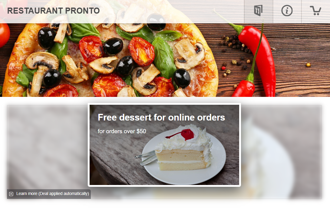 - Free dessert for orders over $50: a tempting chocolate cake will persuade people to add more menu items to their cart.