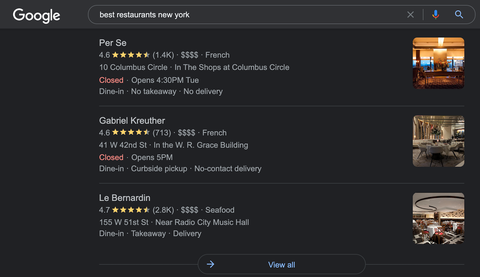- Use ratings and reviews in ads – “A restaurant with 1,000 5-star reviews on Google” sounds better than “A good restaurant”