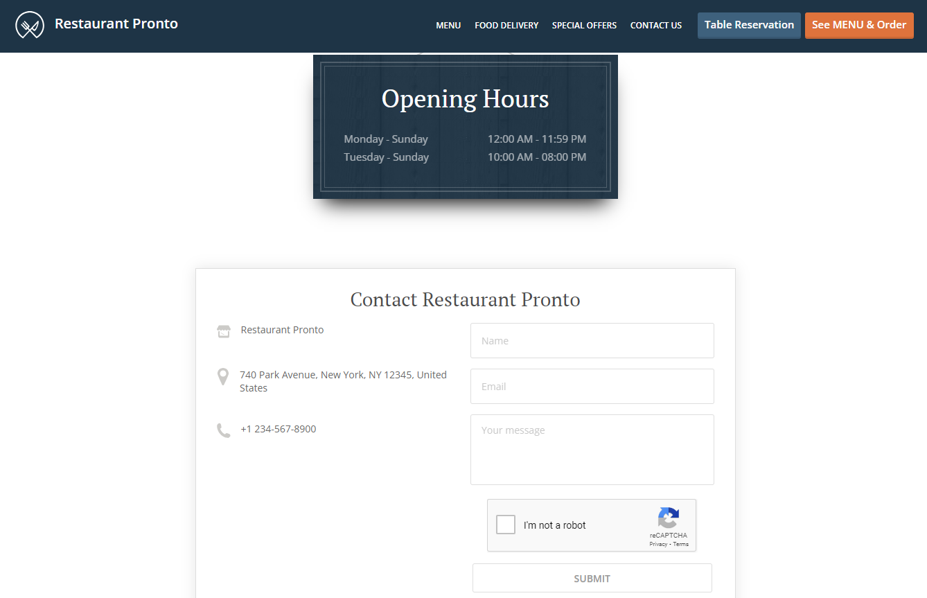Don’t forget to also have your working hours available on the website. Otherwise, your risk people coming to your restaurant only to find it closed. You lose a client, they lose their trust in you. Moreover, you get bonus points if you also add a map to your location on your restaurant’s website. People will be able to easily find you by identifying landmarks and other businesses around your place.