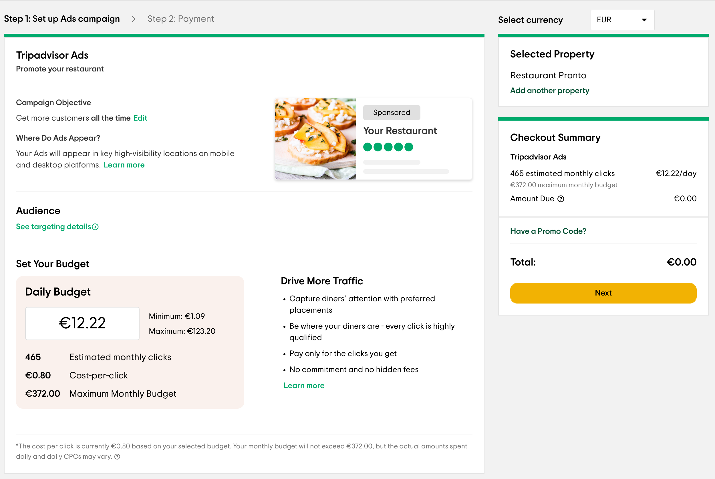 Moreover, due to the way the audience is targeted, you only pay for clicks from customers who are really interested in your restaurant and are on the verge of making a decision, so you won’t waste TripAdvisor campaign funds.