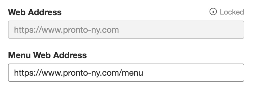 At the bottom of the basic information section, you will see a box titled Menu Web Address. To have your menu posted on Yelp, copy and paste the link to your restaurant menu from your website.